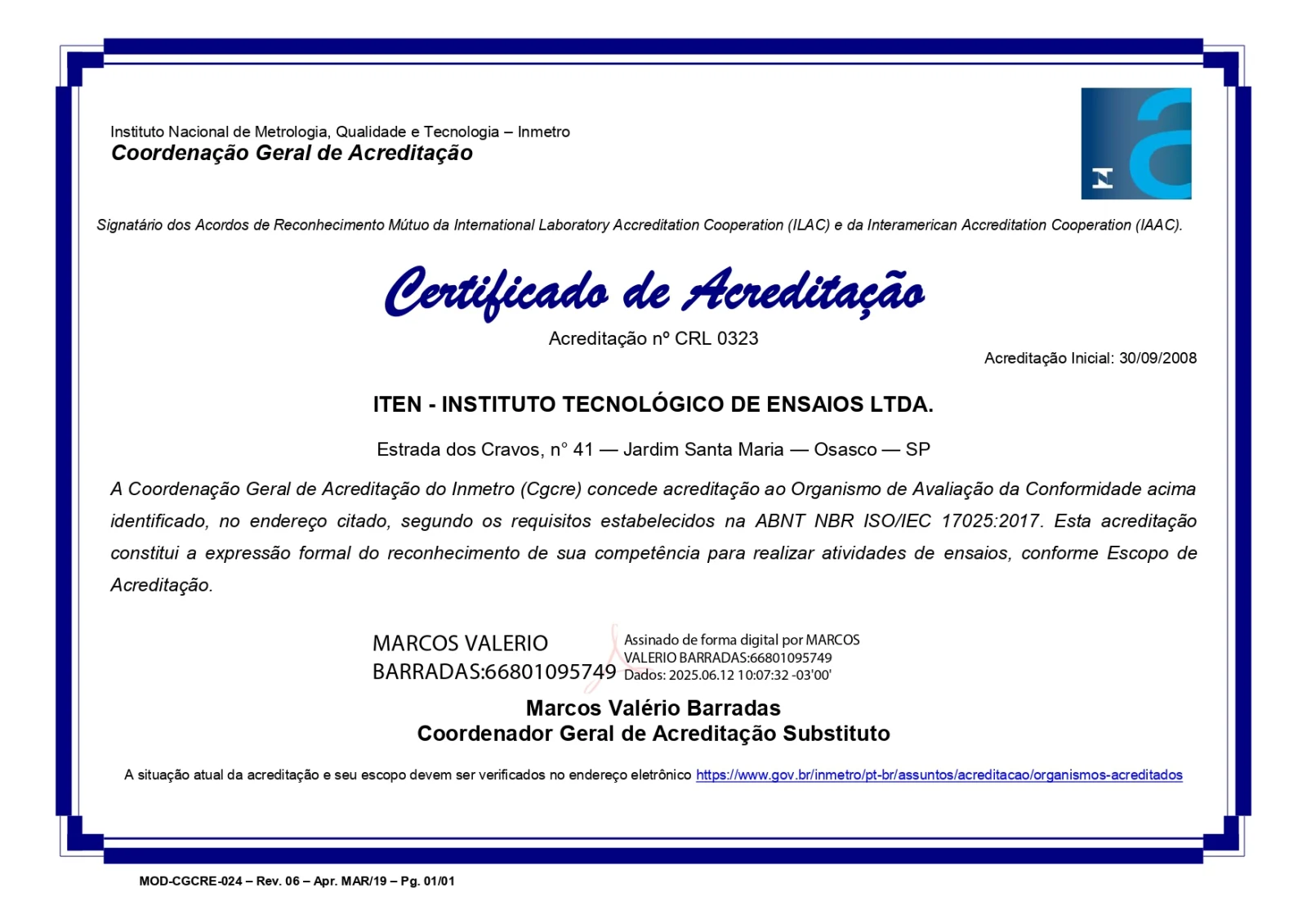 O ITEN garante qualidade na prestação de serviços e em todos os ensaios que realiza. E para passar mais credibilidade e segurança aos nossos clientes, temos certificados de acreditação e confiança da Anatel (Agência Nacional de Telecomunicações) e da Coordenação Geral de Acreditação do Inmetro, que são duas empresas extremamente importantes e reconhecidas nessa área de atuação.